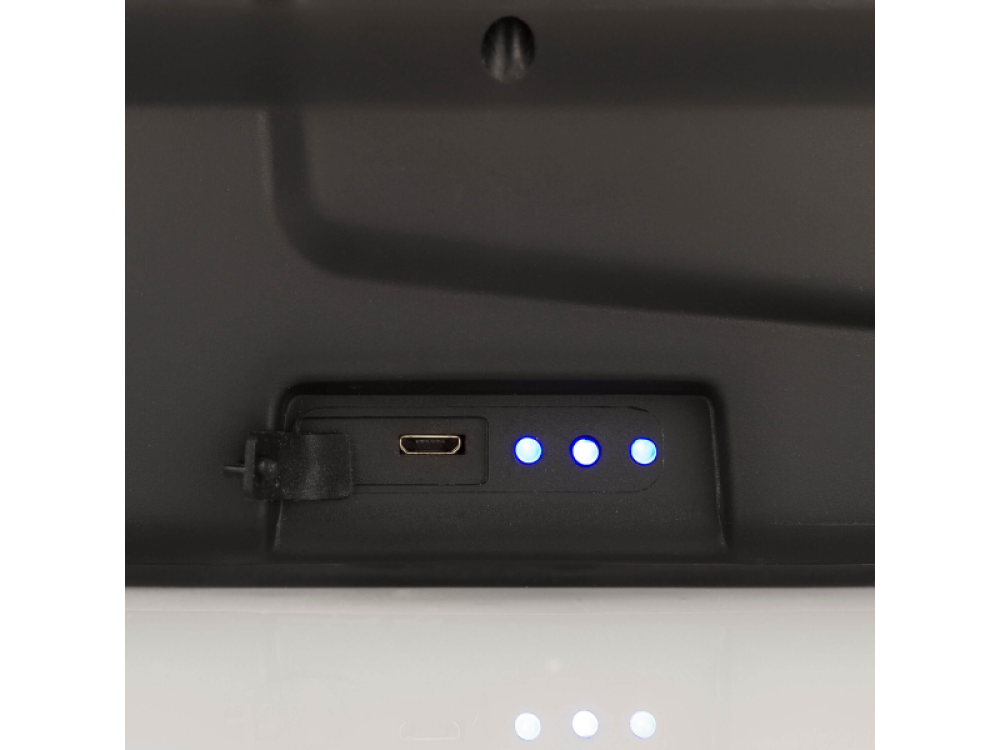 La pompa è alimentata da una batteria al litio ricaricabile con ricarica tramite micro USB, che assicura una durata fino a 2,5 ore e tempi di ricarica ridotti. Il pulsante di accensione e spegnimento integrato sull’impugnatura consente una gestione rapida e funzionale delle operazioni.