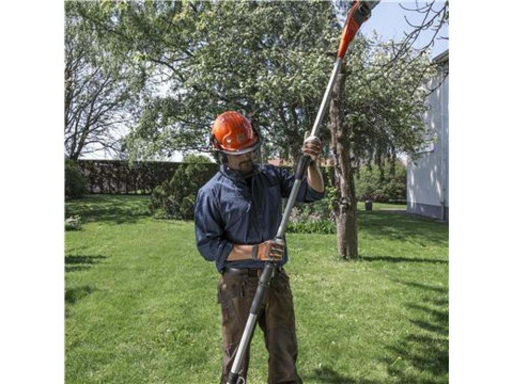 L'élagueuse sans fil Husqvarna 120iTK4-P, grâce à la perche télescopique incluse, permet de travailler en tout confort sur des branches jusqu'à 4 mètres du sol. La perche elle-même est particulièrement facile à transporter grâce à la possibilité de la démonter.