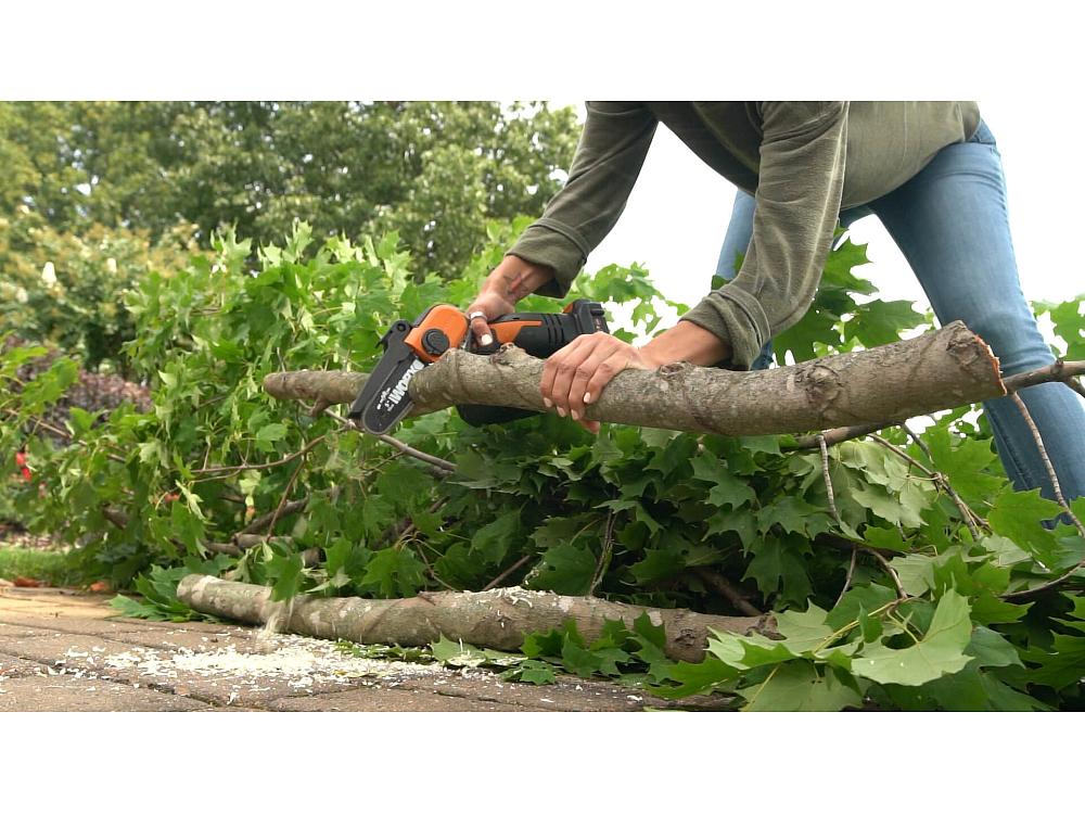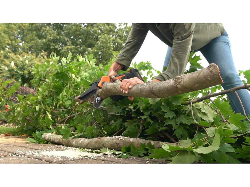 Cette élagueuse sans fil Worx est adaptée à l'élagage. Il s'agit d'une élagueuse sans fil pratique et légère qui peut être utilisée sans câble et sans émissions de gaz d'échappement.