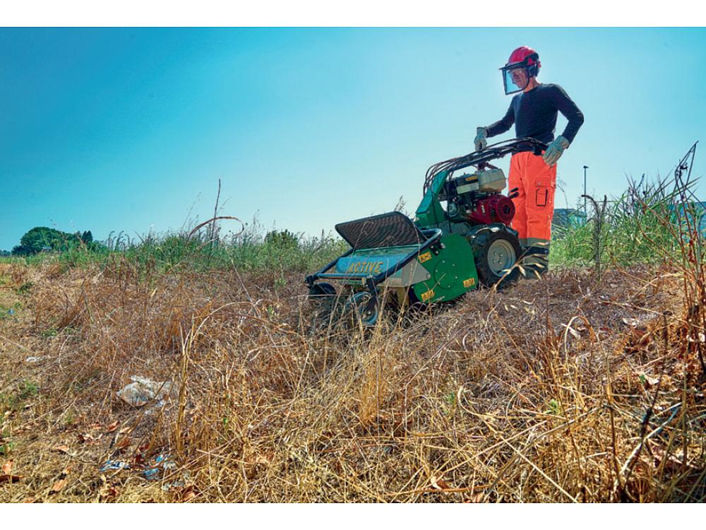 Guidon avec supports anti-vibrations, réglable en hauteur et latéralement pour travailler dans un confort extrême. De plus, l'Active AC942PRO est équipée d'un frein de sécurité, d'un frein de roue, d'un blocage rapide de la roue avant, afin d'aborder en toute sécurité n'importe quel type de travail.