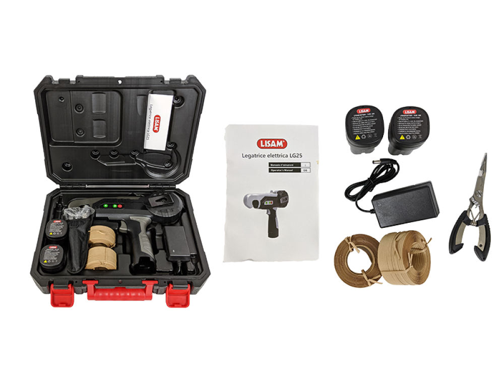 La ligatureuse Lisam LG 25 est un outil extrêmement pratique et facile à utiliser. Une petite poignée et un poids total de 1065 grammes, 4 modes de serrage du fil sélectionnables directement sur l'écran avec un diamètre de liage maximum de 25 mm.