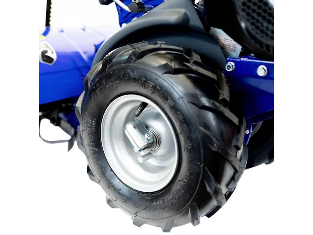 Les roues de ce motoculteur sont des roues de tracteur pneumatiques à semi différentiel mécanique, avec blocage pour un transport en toute sécurité.