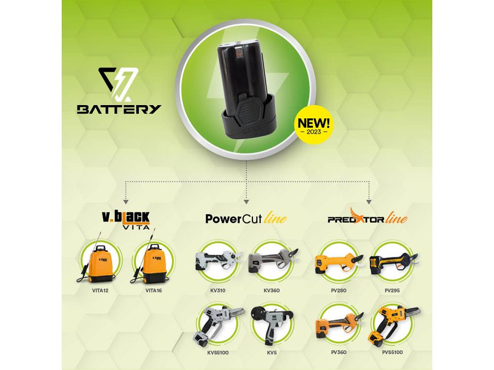 V.BATTERY peut être utilisé sur tous les produits de la famille Volpi alimentés par une batterie de 14,4V.