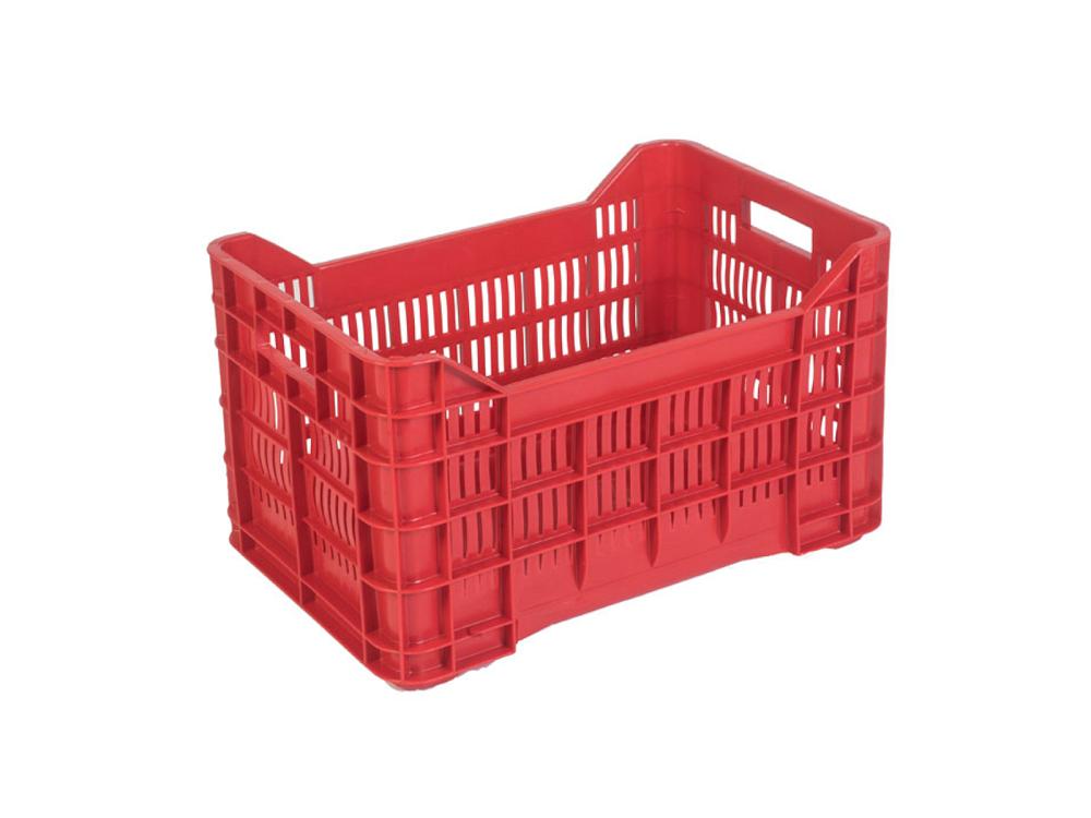 Caisse à fruits et légumes en plastique , capacité 40 litres, dimensions 520 L x 350 P x 300 H mm, fond fermé et parois perforées. Caisse en plastique empilable utilisée dans le secteur agricole pour la récolte, le transport des olives ou d'autres denrées alimentaires. Caisse en plastique qui a le grand avantage de prendre la moitié de l'espace lorsqu'elle est vide grâce à sa fonction empilable. Caisse empilable résistante aux chocs en polyéthylène haute densité (PEHD) adaptée au contact alimentaire. Capacité de charge de 20 kg.