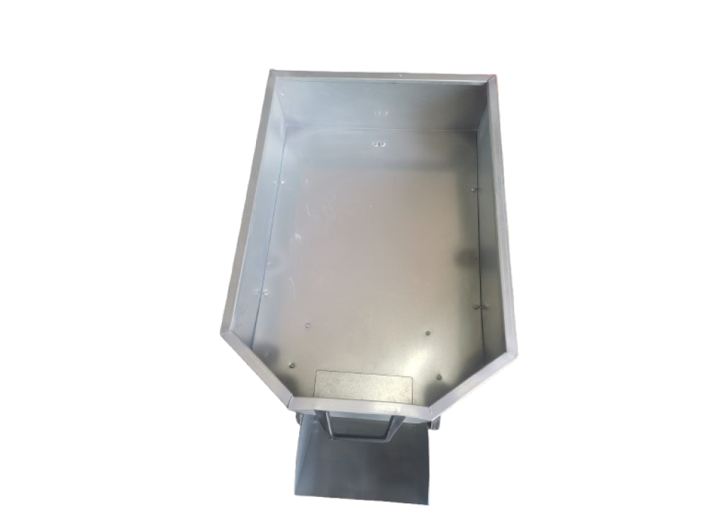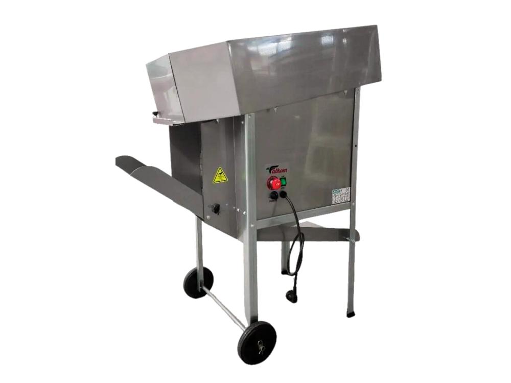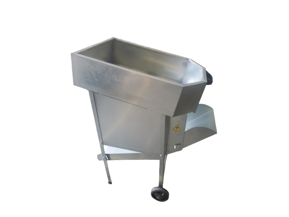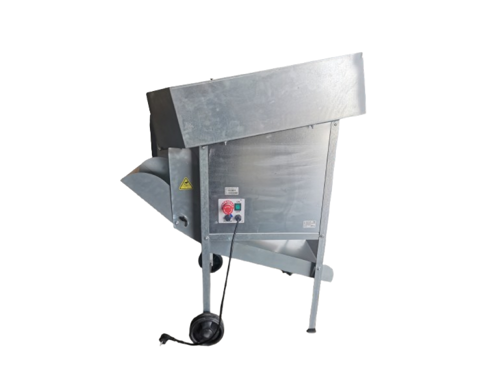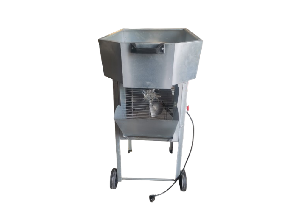 Le défoliateur électrique Falkom est fabriqué en acier galvanisé et dispose d'une grande trémie de 77 litres.