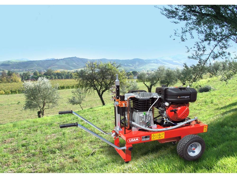 Ce compresseur Lisam à moteur diesel permet de travailler facilement avec plusieurs opérateurs en même temps, aussi bien pour la récolte des olives que pour la taille.