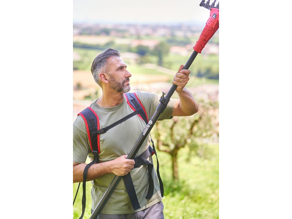 Il est équipé de : 4 + 4 peignes, d'une largeur de travail de 500 mm et de 3 modes de réglage de la vitesse, il sera très facile d'adapter la récolteuse aux différentes exigences de travail, en assurant un contrôle optimal. La longueur de la perche télescopique va d'un minimum de 2,25 m à un maximum de 3,10 m, ce qui vous permet d'atteindre même les olives les plus difficiles. Le panneau de commande avec écran LCD rend l'utilisation simple et intuitive, vous permettant de surveiller les performances et l'état de la batterie.