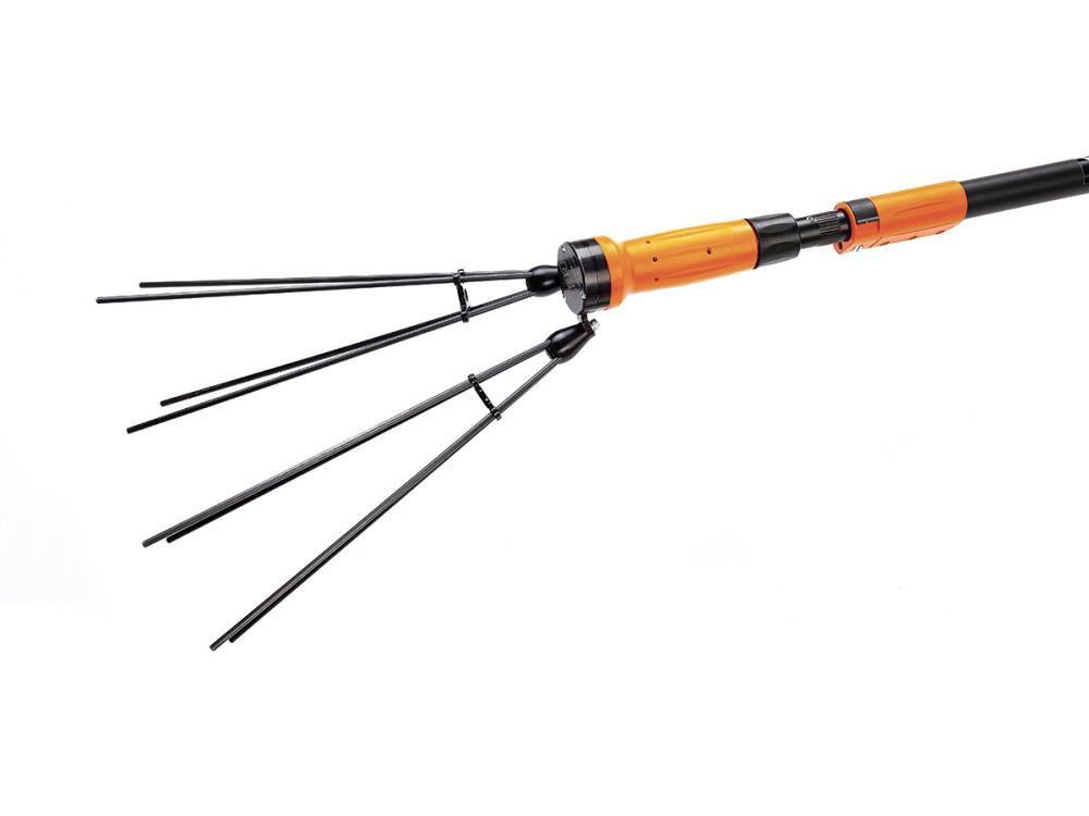 Le V12BASE est équipé d'une perche télescopique extensible de 1,70 à 3,10 mètres, ce qui permet d'atteindre les branches les plus hautes depuis le sol sans avoir recours à des échelles ou à des supports.
