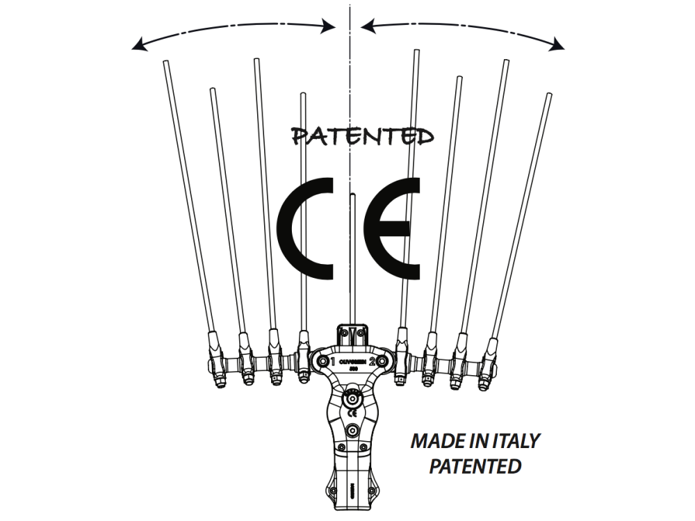 Le mouvement et la forme des peignes, avec des tiges en carbone, lui permettent de pénétrer profondément dans les branches de la plante et permettent une excellente récolte sur tous les types d'oliviers.