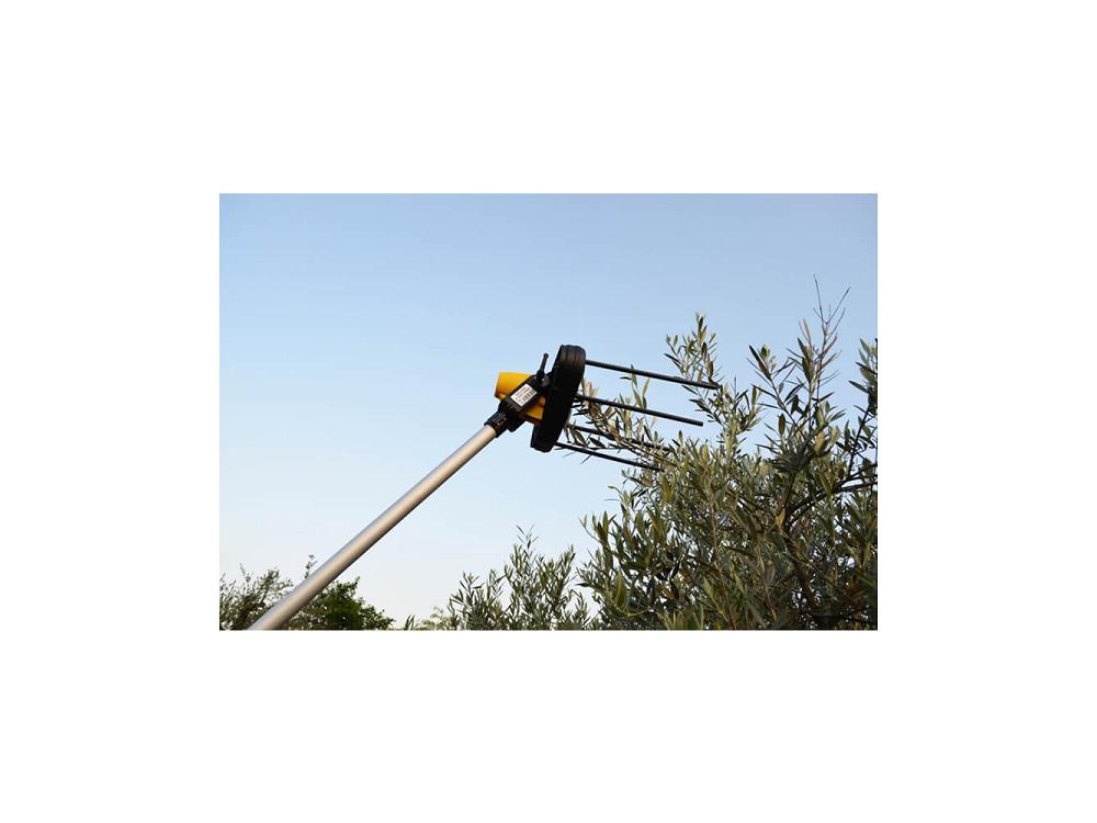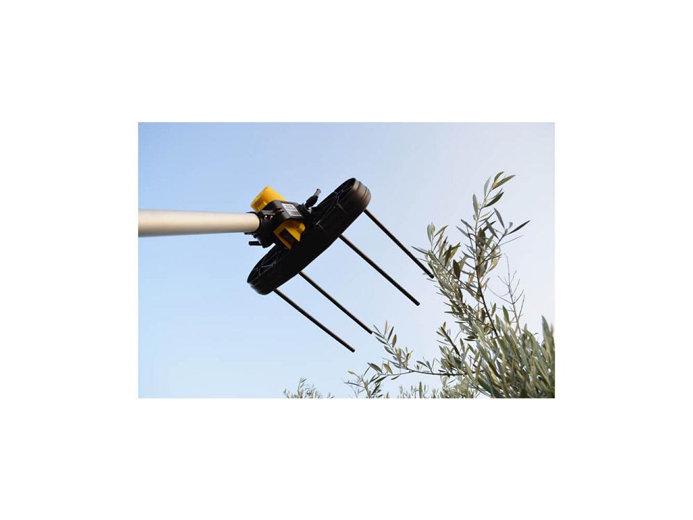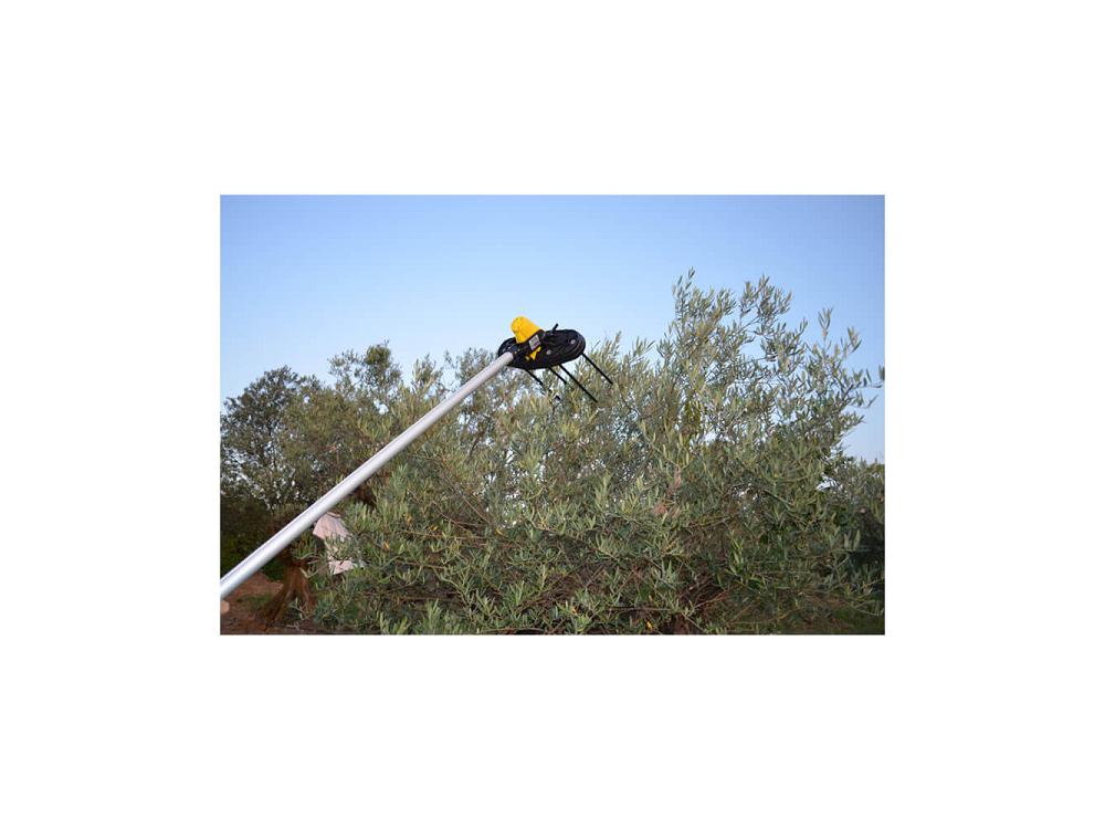 Grâce à son mouvement rotatif tronconique, il est efficace pour récolter tous les types d'olives. Il fonctionne avec une banale batterie automobile de 12 volts.