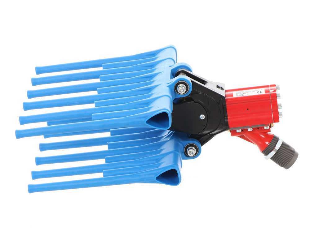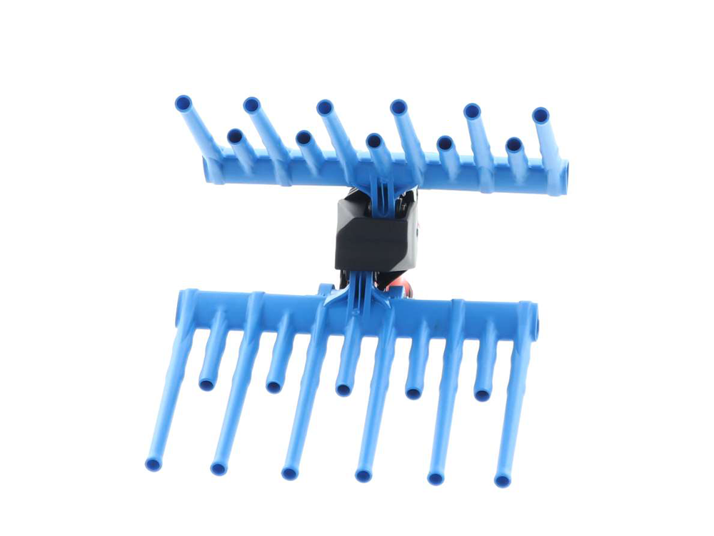 Les râteaux allégés en technopolymère avec des dents fixes de deux longueurs disposées en alternance permettent un contre-mouvement frontal, idéal pour un travail intensif sur des arbres bien taillés tout en garantissant des résultats de récolte extraordinaires quel que soit le degré de maturité de l'olive.