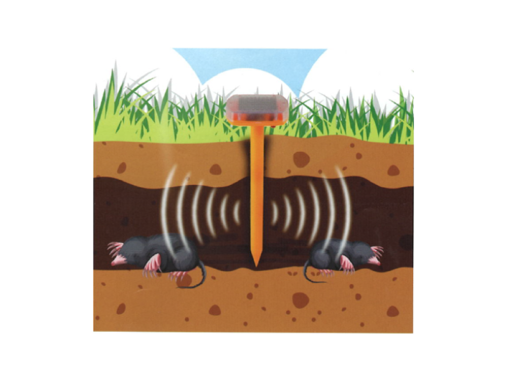 - Fonction : ondes sonores pour dissuader les taupes et les animaux souterrains