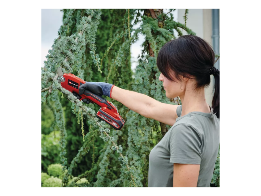 Ce sécateur est une solution parfaite non seulement pour les travaux de jardinage courants, mais aussi pour les coupes plus exigeantes qui nécessiteraient normalement une scie ou un sécateur manuel. Équipé d'un clip ceinture, il est facile à transporter, même pour les travaux sur les arbres ou les haies. La poignée ergonomique avec softgrip assure le confort même pendant les longues sessions d'utilisation, tandis que l'interrupteur marche/arrêt coulissant et l'interrupteur de sécurité intégré offrent une protection maximale pendant l'utilisation.