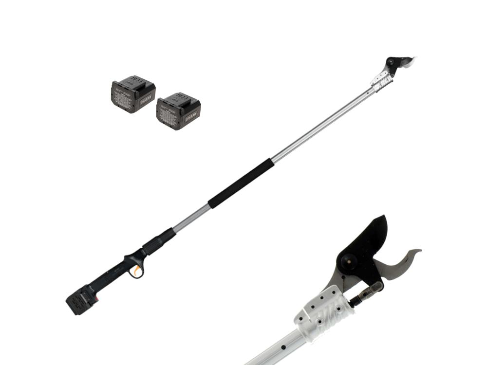 Le sécateursur perche sans fil KV201 de Volpi, avec batterie lithium-ion, est équipé de lames de coupe téflonées et d'une lame mobile interchangeable d'une ouverture maximale de 38 mm. Grâce à leur taille de 200 cm, ils permettent de travailler sur une large gamme de cultures et sont parfaits pour la taille en hauteur. L'équilibre du poids a été spécialement étudié pour réduire les efforts pendant l'utilisation et le poids de 1,8 kg. Ces sécateurs, comme toute la gamme, sont équipés d'un moteur BRUSHLESS.