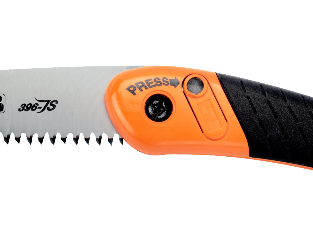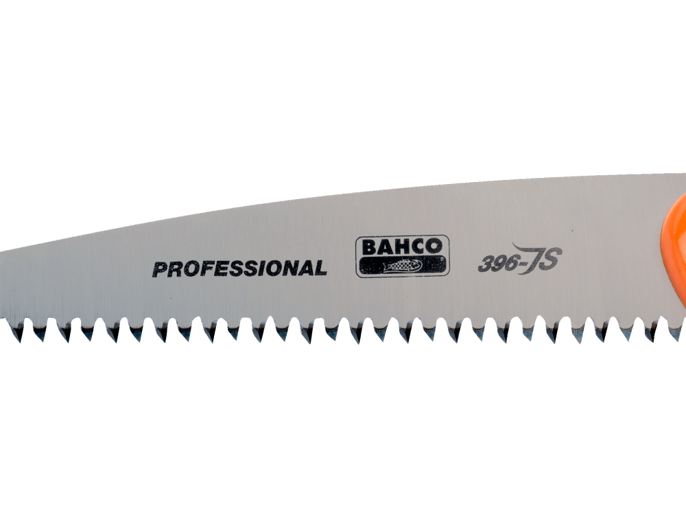 Scie à main Bahco 396 JS avec lame de 19 cm et poignée ergonomique confortable en bi-composant, particulièrement adaptée à la coupe du bois vert et excellente pour la taille des oliviers grâce à la denture spéciale JS.