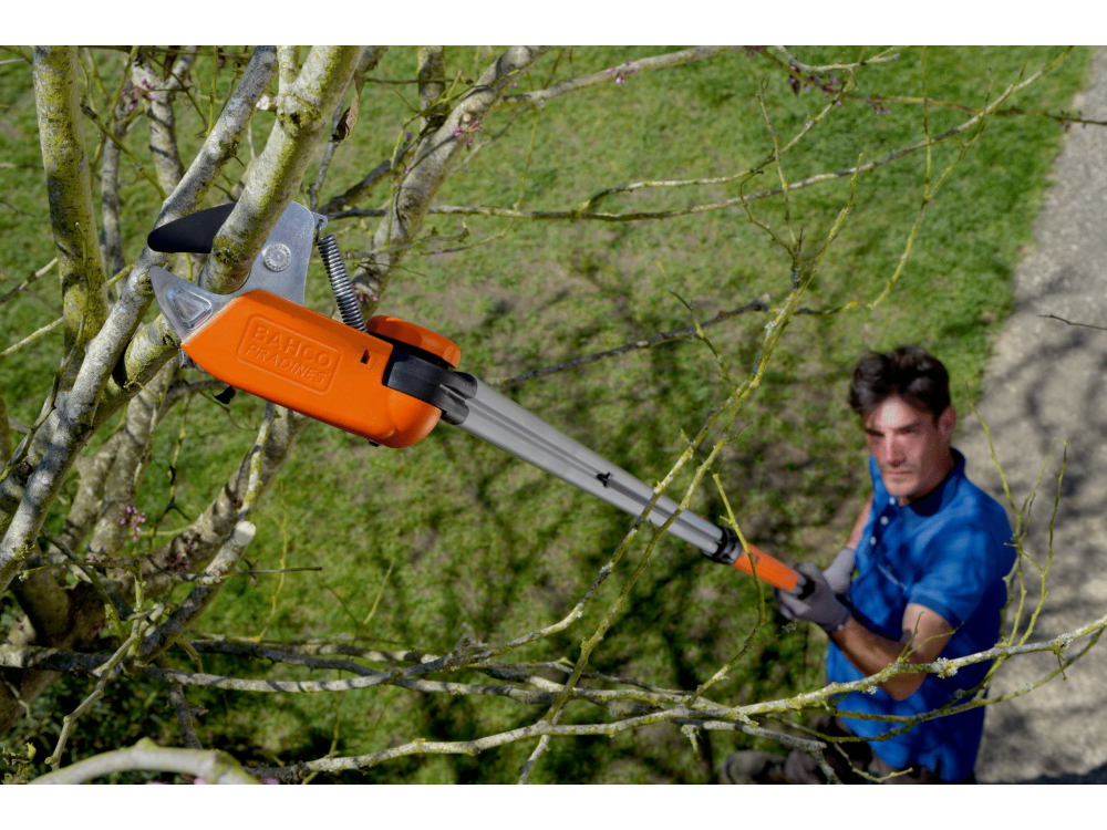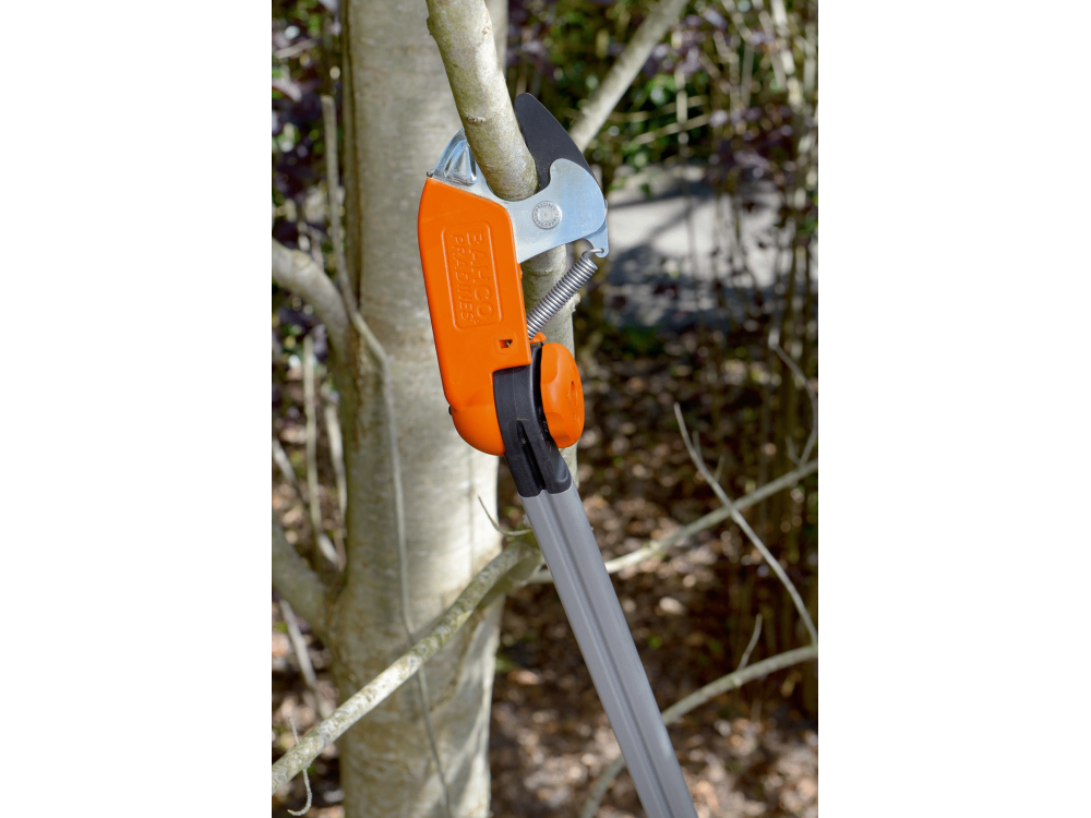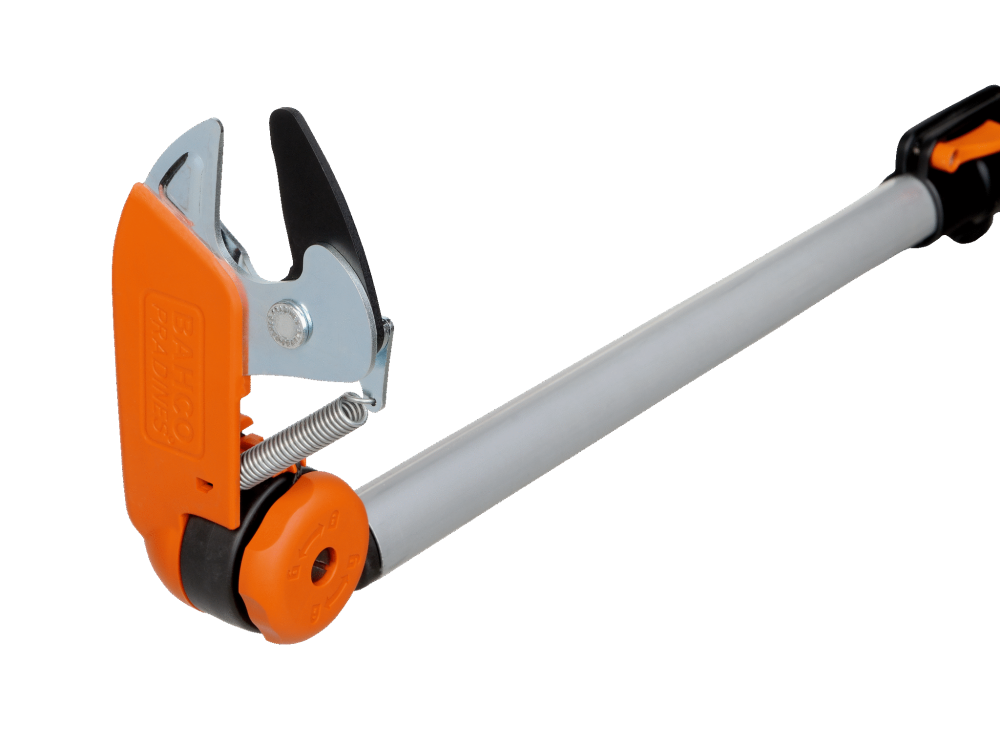 Élagueuse avec perche télescopique en aluminium extensible de 2,10 à 4,10 mètres. Conçue pour couper les branches jusqu'à 32 mm de diamètre situées au sommet de la plante, l'élagueuse Bahco permet d'élaguer sans utiliser d'échelle.
