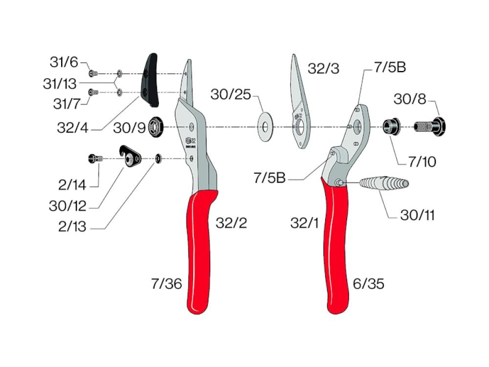 Le sécateur FELCO 32 est fabriqué en aluminium forgé et est garanti à vie. La lame est en acier trempé de haute qualité avec une aile en laiton vissée et réglable. Tous les composants sont remplaçables et la coupe est facilement réglable. La poignée est ergonomique et le revêtement antidérapant en fait un outil sûr et précis. Le FELCO 32 est un sécateur particulièrement adapté à la coupe de bois durs et compacts.