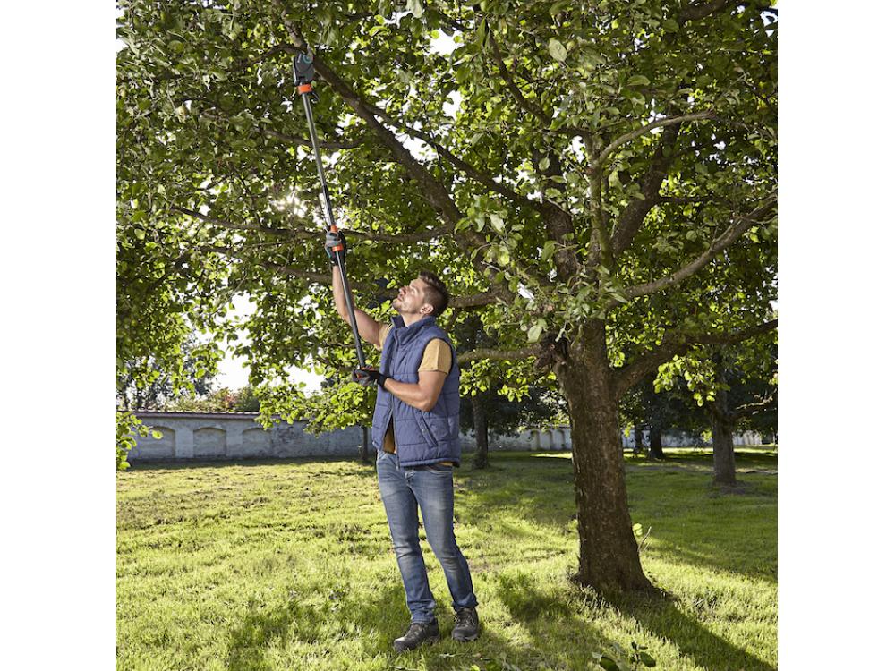 L'élagueuse GARDENA StarCut 160 Plus est le spécialiste du soin et de l'entretien des arbres. D'une longueur de 160 cm, elle permet une coupe facile et sûre depuis le sol sans utiliser d'échelle.