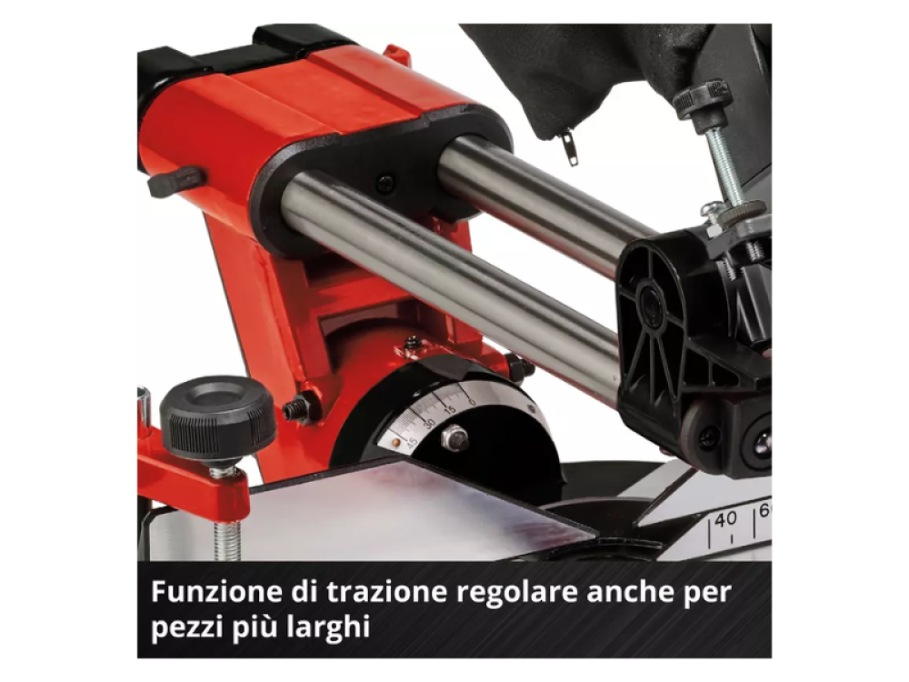 La scie à onglets Einhell TE-SM 36/210 Li - Solo est équipée d'une fonction de traînage qui facilite le travail sur les grandes pièces et permet des coupes larges et régulières. La table rotative intégrée permet un réglage précis de l'angle, tandis que la tête de scie peut s'incliner jusqu'à 45° vers la gauche, ce qui facilite les coupes d'onglets. L'appareil est équipé de supports X-Tend, qui peuvent être déployés d'une seule main et sans outils, offrant ainsi une grande surface de travail réglable.