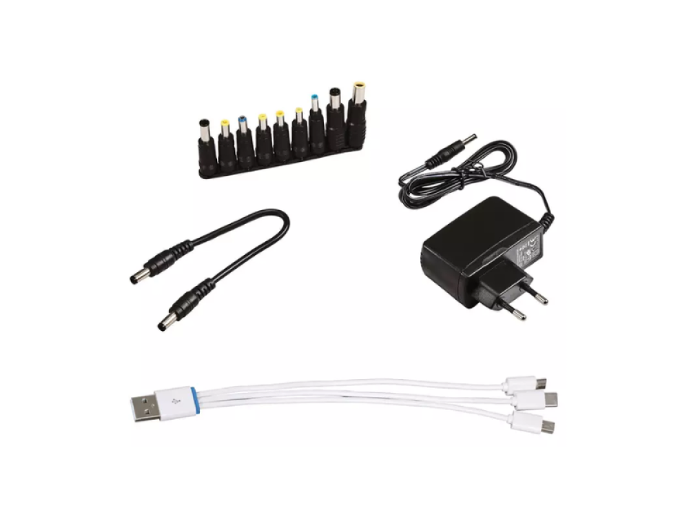 - Accessoires inclus: câble adaptateur USB, 9 adaptateurs pour ordinateur portable, chargeur 230 V