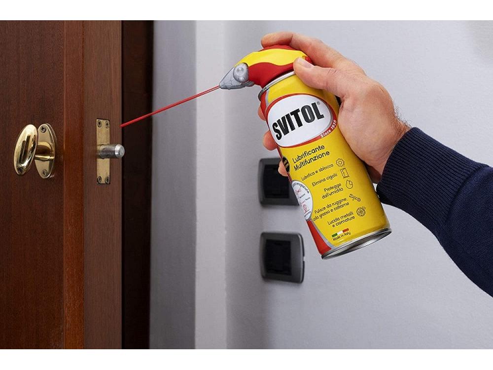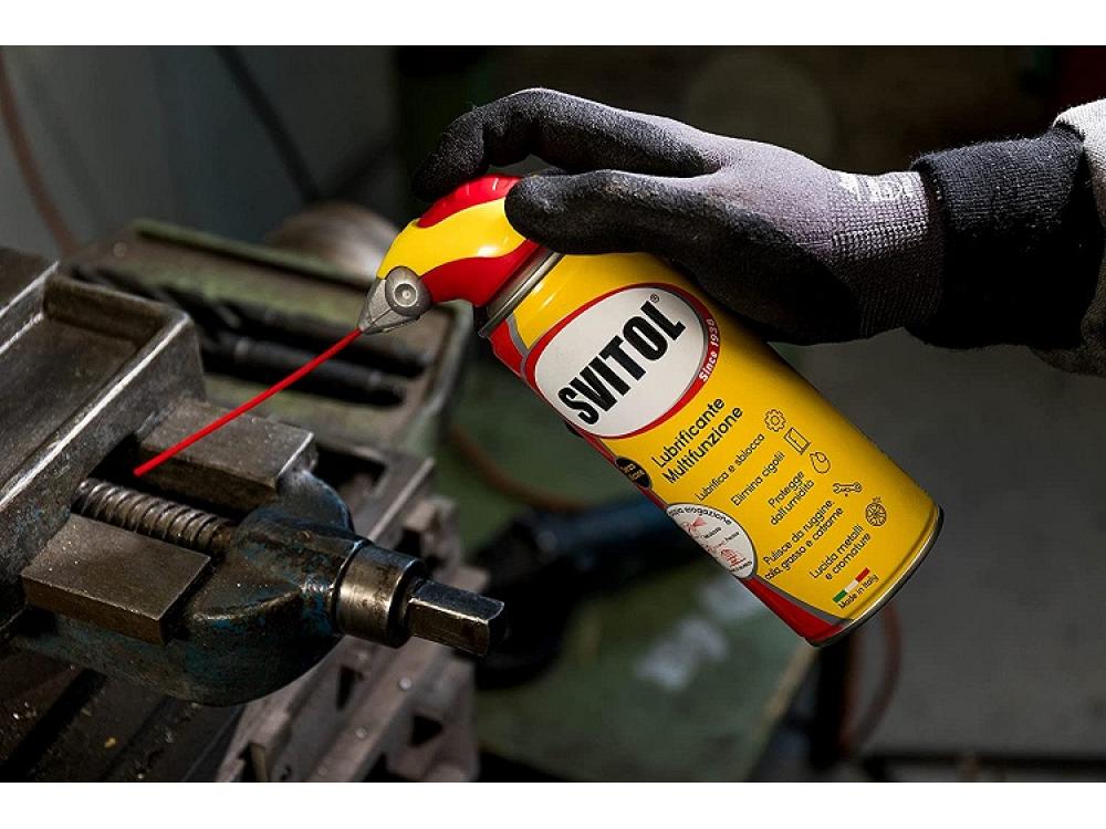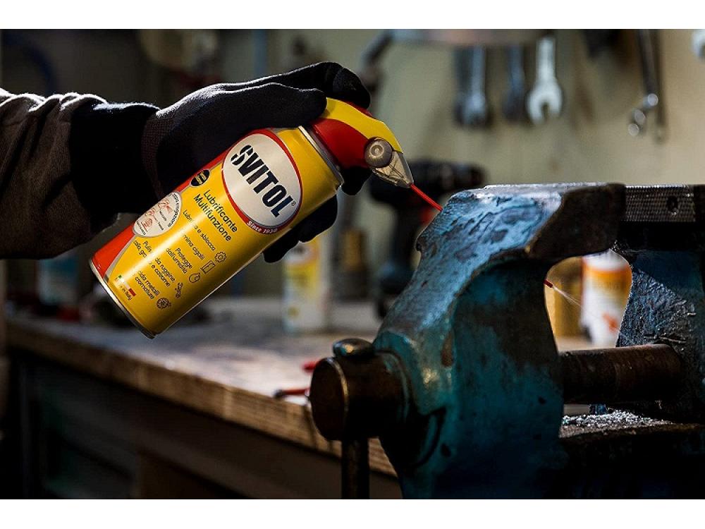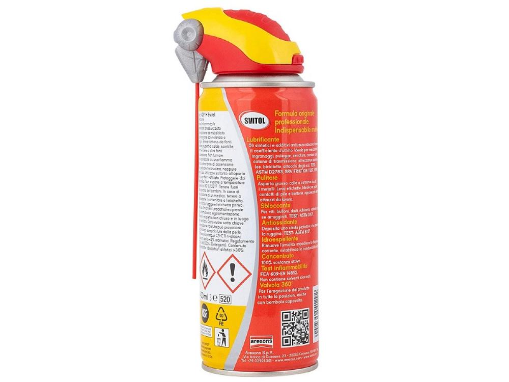Le lubrifiant multifonctionnel Svitol spray double paille distributrice 400ml est idéal pour lubrifier et débloquer les engrenages rouillés et les mécanismes généraux tels que les poulies, les serrures, les charnières, les câbles mais aussi les chaînes de transmission et les équipements sportifs (ex. vélos, fixations de ski).