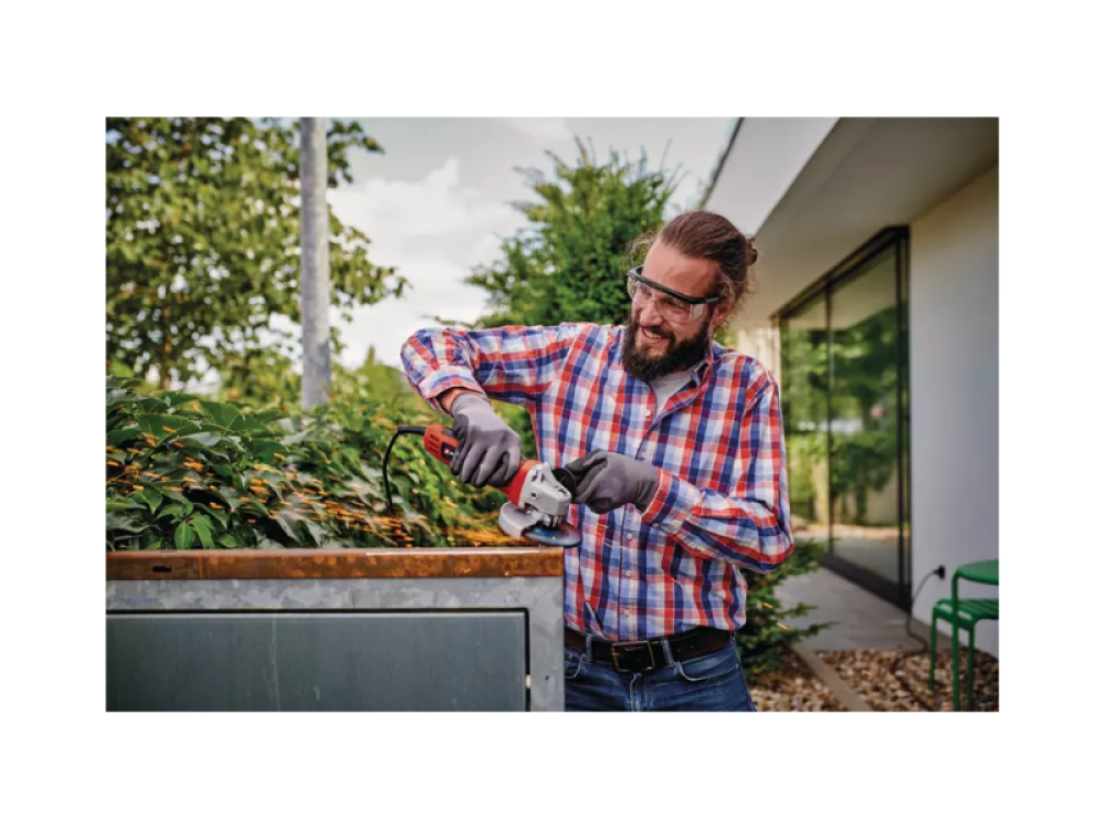 Le protège-disque offre une sécurité accrue à l'utilisateur, tandis que le système de blocage de la broche permet un remplacement rapide et sans outil du disque. La tête d'engrenage métallique assure robustesse et flexibilité dans tous les types d'utilisation, et lapoignée supplémentaire montable à deux positions offre une prise ferme et confortable pendant les opérations.