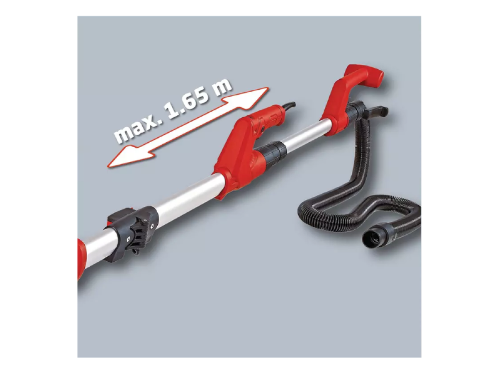 Conçue pour travailler sur de grandes surfaces, la ponceuse est équipée d'un manche télescopique qui s'étend jusqu'à 165 cm, ce qui vous permet d'atteindre facilement et sans effort les zones les plus élevées. La tête de la ponceuse est positionnée sur des roulements et dispose d'une articulation à rotule qui assure un mouvement libre, facilitant le travail dans toutes les directions et maintenant une adhérence constante à la surface. Le réglage de la vitesse permet d'adapter la ponceuse à différents types de surfaces, améliorant ainsi la qualité du résultat final.
