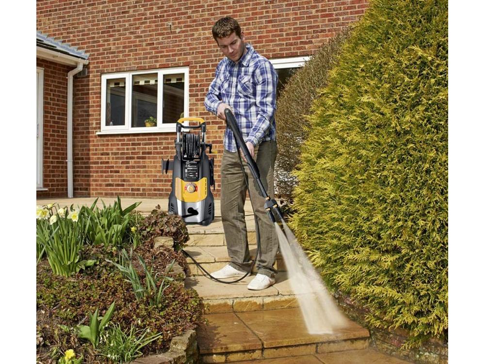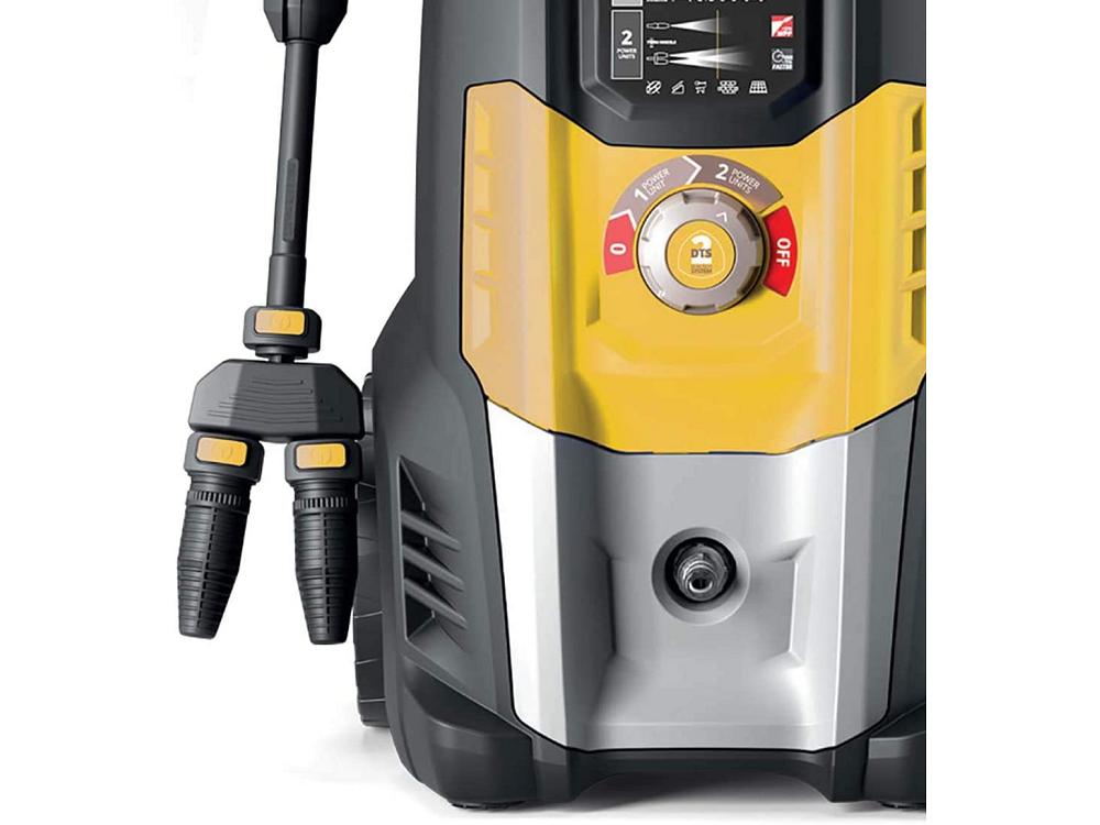 Les autres caractéristiques comprennent un filtre d'entrée d'eau inspectable, un système de moussage à haute pression, un porte-accessoires intégré et une fonction d'auto-amorçage. Le système Twin Nozzle avec deux buses rotatives augmente l'efficacité du nettoyage. Avec une pression maximale de 150 bars et un débit maximal de 810 l/h, ce nettoyeur haute pression est idéal pour une large gamme d'applications de nettoyage intensif.