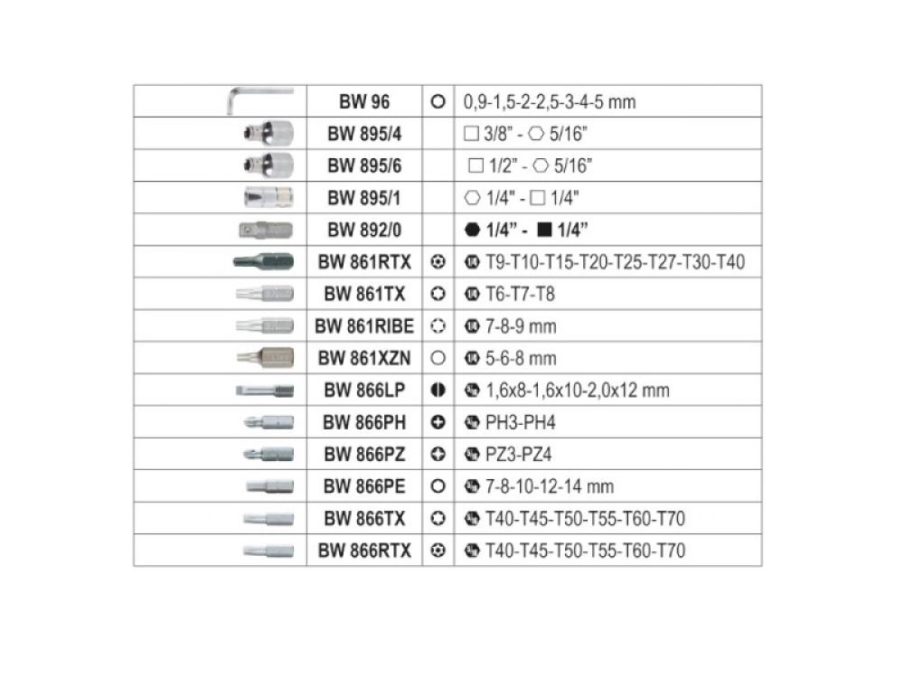 Outils inclus dans la mallette Beta Worker 903E/C170