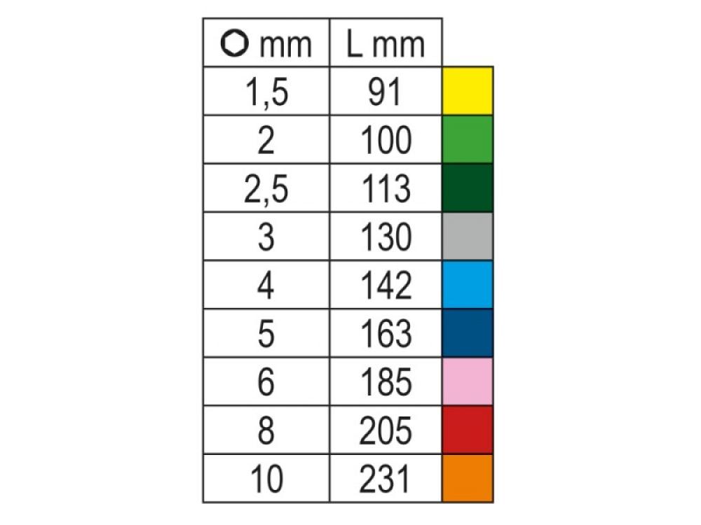 La couleur des clés permet d'identifier immédiatement la taille de la clé Allen.
