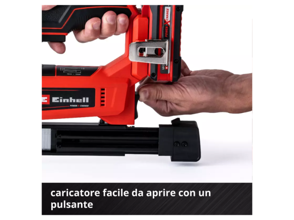 L'agrafeuse sans fil Einhell TE-CN 18 Li - Solo est un outil polyvalent, idéal pour une utilisation dans le garage, l'atelier et dans les travaux de bricolage, de rénovation et d'aménagement. La combinaison 2 en 1 de l'agrafeuse et de la cloueuse offre la possibilité de fixer des matériaux avec des agrafes ou des clous, ce qui la rend particulièrement utile pour divers projets. Cette agrafeuse fait partie de la famille Power X-Change, elle est donc compatible avec toutes les batteries et tous les chargeurs de la gamme, offrant ainsi une flexibilité maximale.