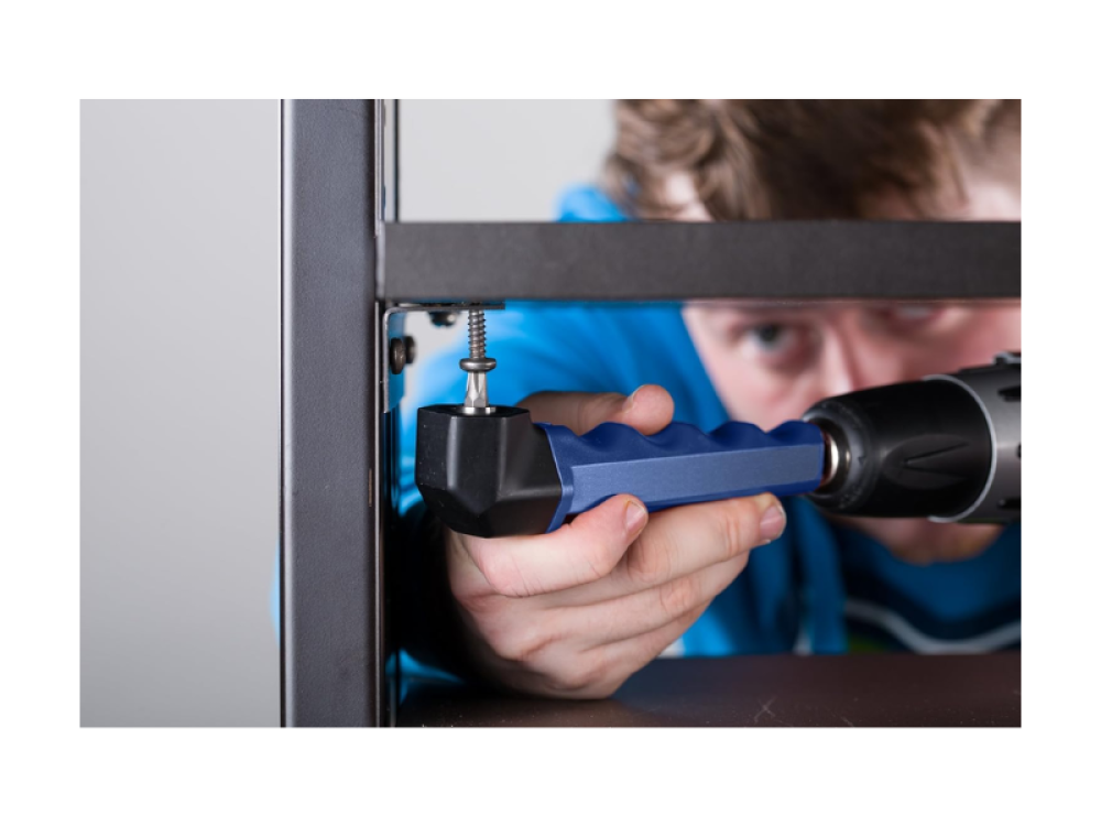 Cet accessoire est conçu pour faciliter le travail dans des environnements complexes, permettant un perçage et un vissage précis même dans les espaces restreints, grâce à son orientation à 90°.