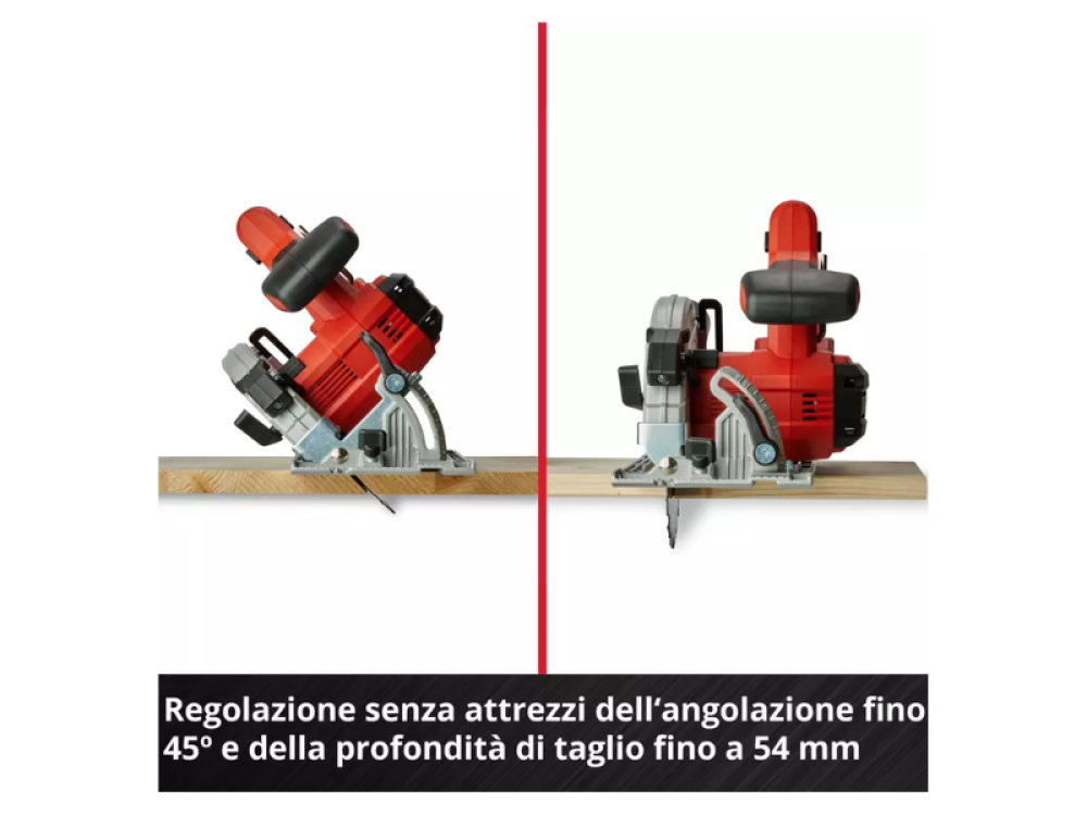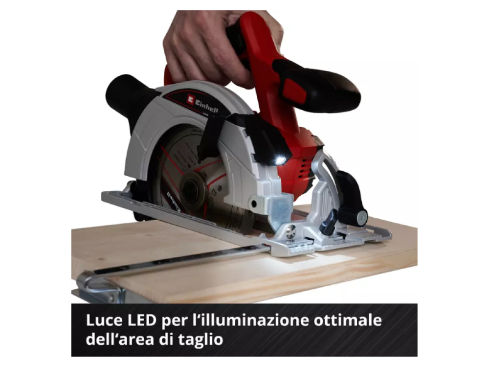 L'éclairage LED intégré illumine parfaitement la zone de coupe, garantissant une vision claire pendant l'utilisation. La scie est également compatible avec le rail de guidage Einhell, disponible séparément, pour améliorer encore la précision de la coupe.