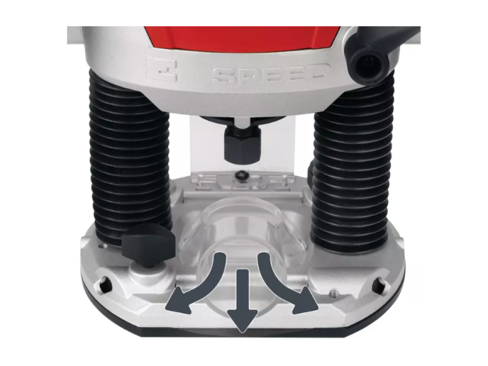 Les pinces de serrage de Ø6 mm et Ø8 mm rendent la fraiseuse encore plus polyvalente, en permettant l'utilisation de fraises de différentes tailles. L'insert en plastique sur la base protège la surface de la pièce contre les rayures ou les dommages pendant l'usinage, ce qui garantit un bon entretien du matériau usiné.