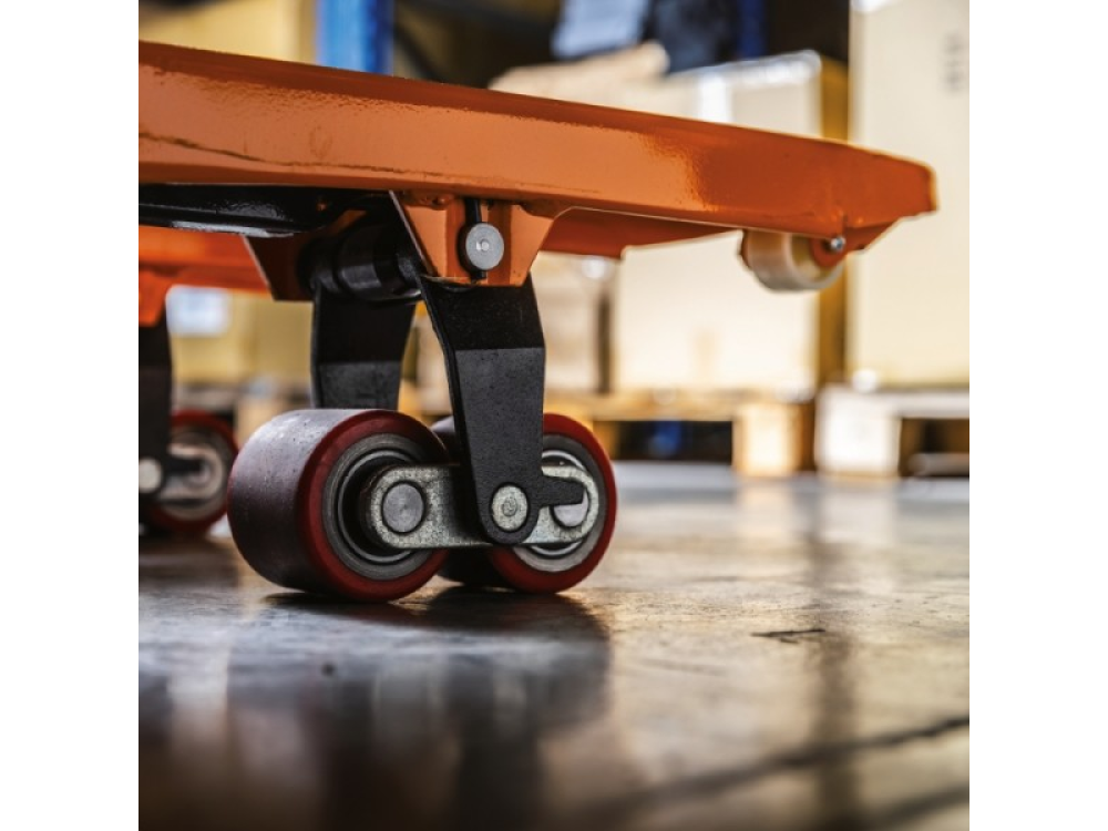 Les roues directionnelles en polyuréthane (PU) de 200x50 mm et les doubles rouleaux avant en PU de 80x70 mm garantissent douceur et résistance sur différentes surfaces. Les rouleaux de guidage facilitent l'accès aux palettes, améliorant ainsi l'efficacité opérationnelle.