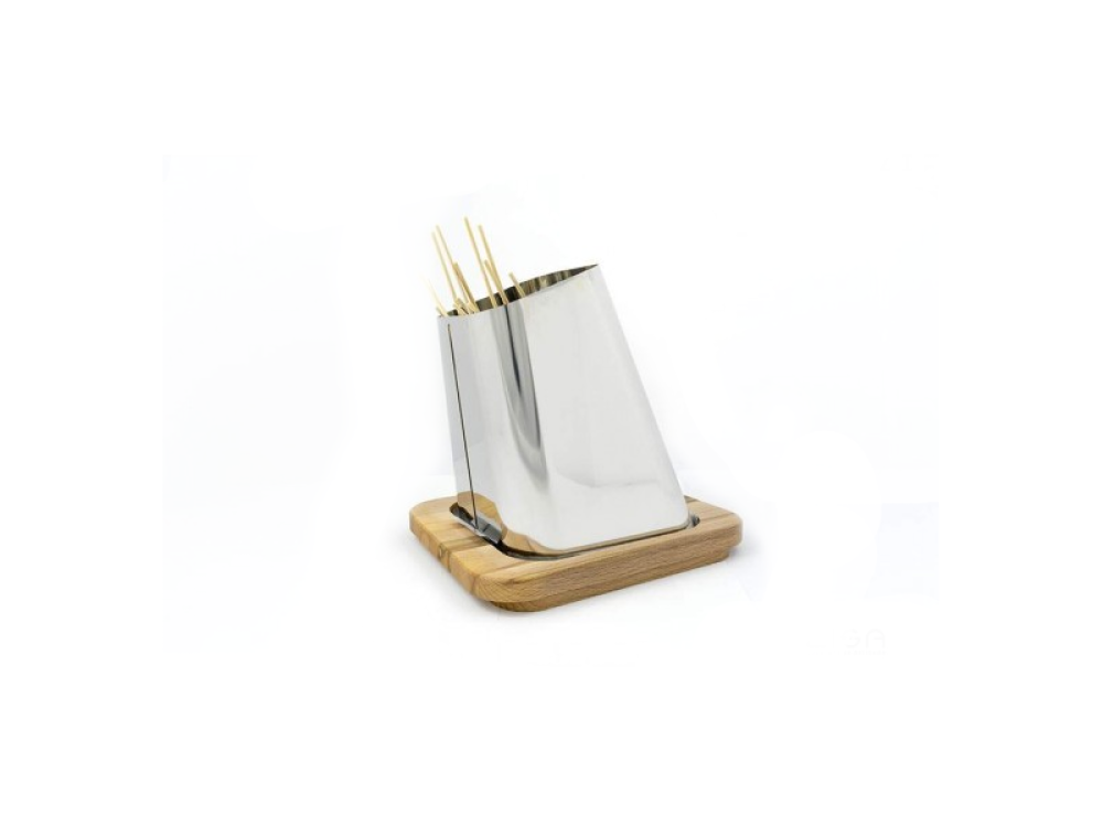 Lisa Porte-brochettes Gran Sasso en acier inoxydable avec base en bois de hêtre Lisa