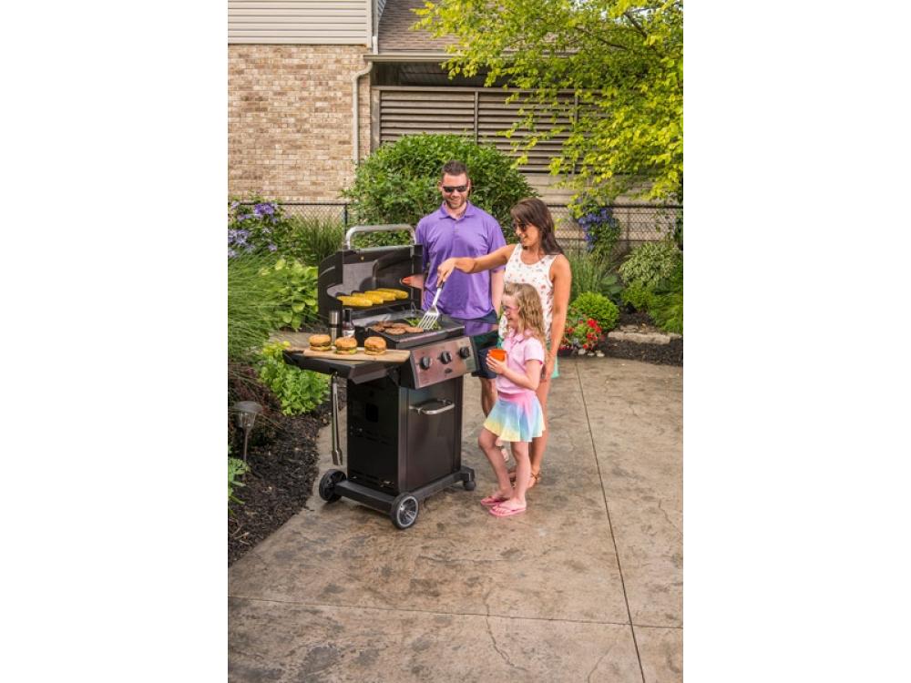 Le barbecue est équipé de diffuseurs de chaleur Flav-R-Wave en acier inoxydable, qui permettent aux sauces de se vaporiser et évitent les flammes inutiles, d'une grille chauffante mobile qui maintient les aliments cuits au chaud et d'un régulateur de pression de 28/30 mm bar.