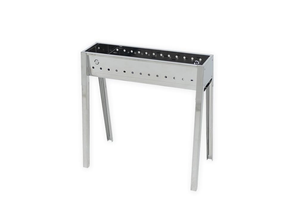 Il suffit de prendre les pieds et de les insérer dans les rails. Ce système permet de démonter facilement le barbecue après utilisation et de le ranger dans les espaces les plus restreints.