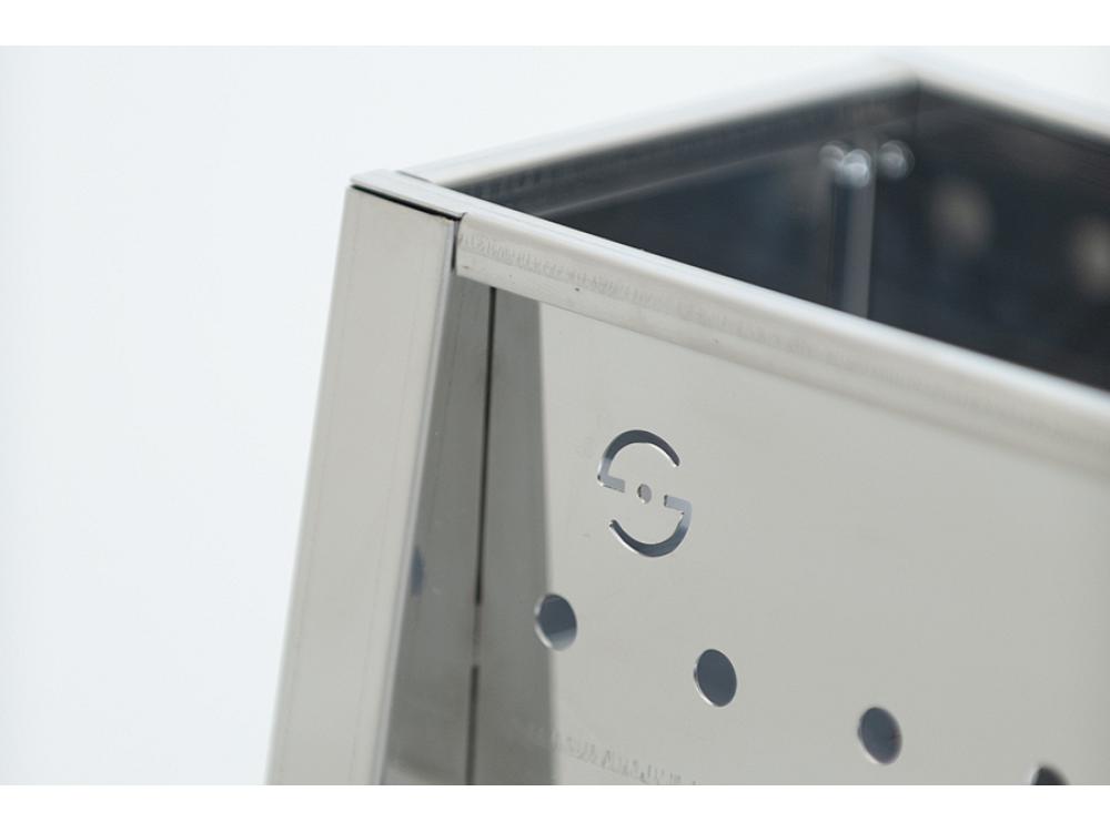 Grâce au système à paroi unique et au double fond, le produit maintient une bonne circulation de l'air sous les braises, réduisant ainsi le coût et le poids du produit.