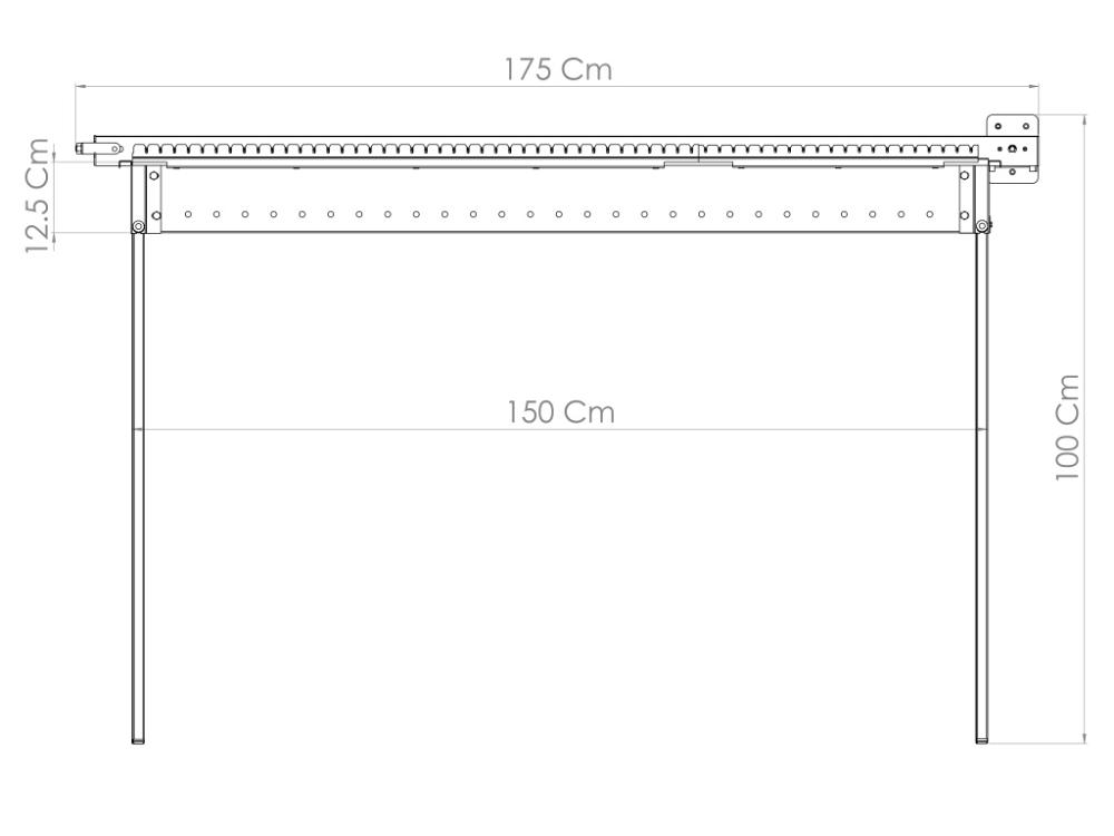 Le canal de 150 cm de long est entièrement en acier AISI 316, tout comme les pieds de support.