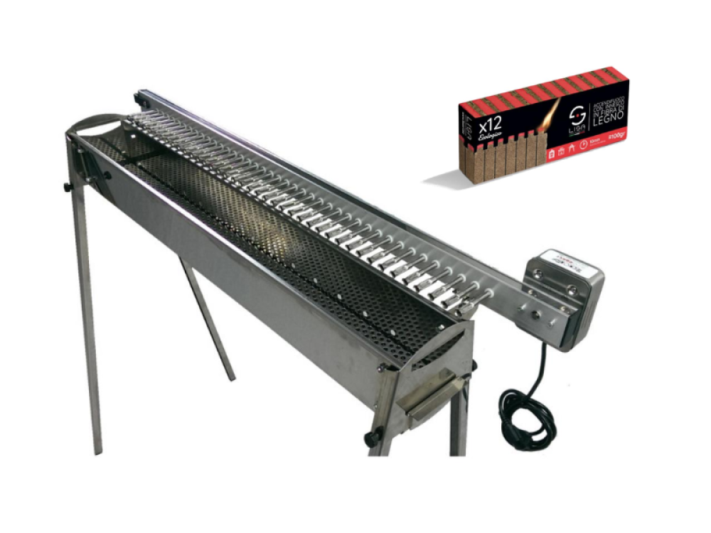 Barbecue au charbon de bois pour rôtis et brochettes avec système de rotation électrique automatique.
