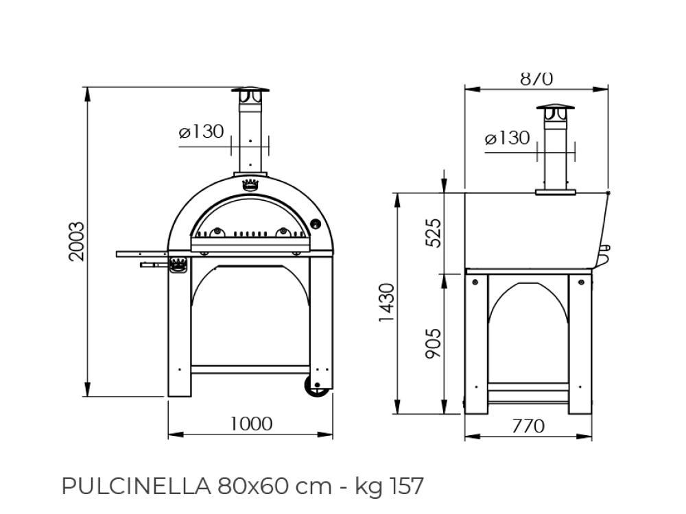 Clementi Forni Four à bois à cuisson directe Pulcinella avec toit en acier inoxydable 80x60