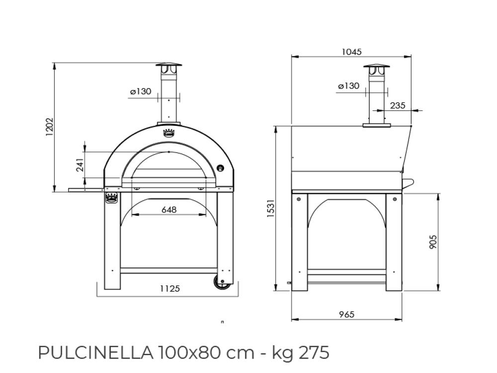 Clementi Forni Four à bois à cuisson directe Pulcinella en acier inoxydable 100x80