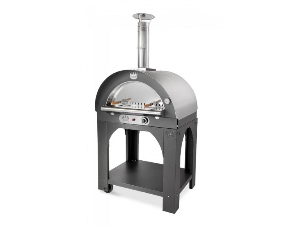 Four peint avec toit en acier inoxydable 430 complet avec chariot à roulettes alimentation : gaz avec brûleur, bouton de commande et bouton d'allumage type de cuisson : directe (une seulechambre decombustion et de cuisson)chambre de cuissonbase en réfractaire alimentaire et dôme en acier inoxydable 430