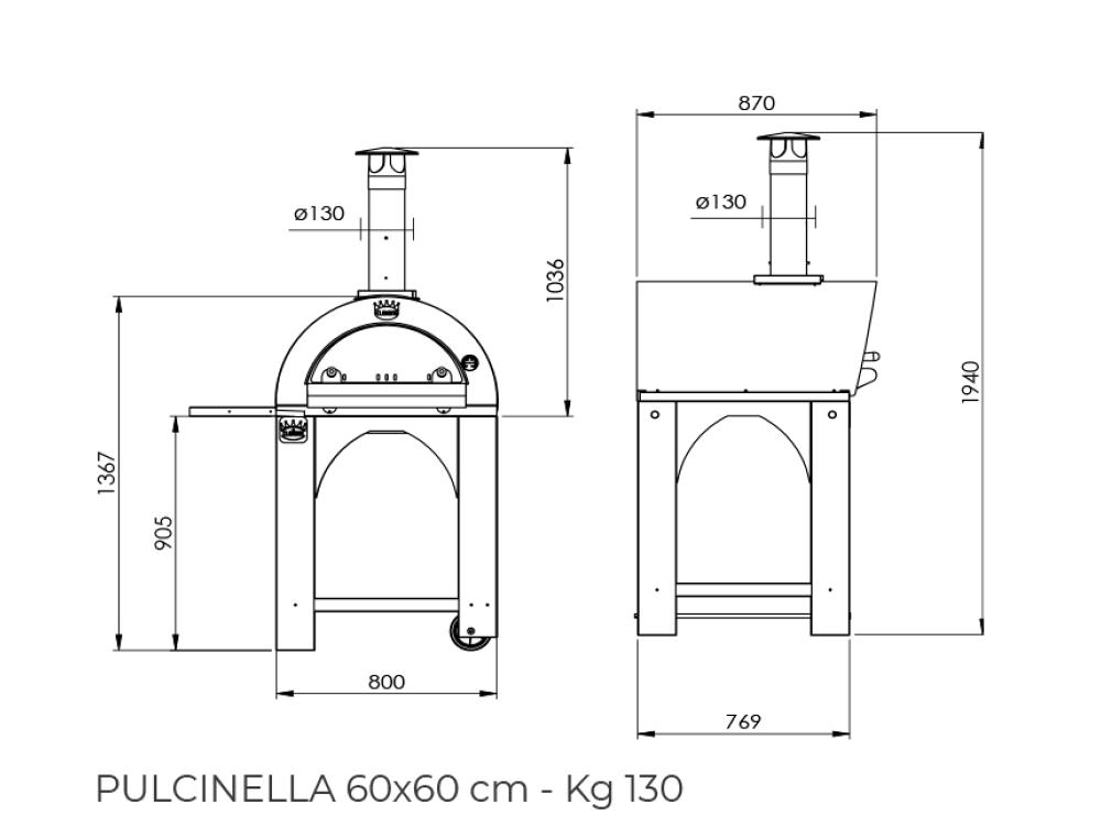 Dimensions disponibles de la chambre de cuisson : 60x60 (2 pizzas) 80x60 (4 pizzas) 100x80 (5 pizzas)