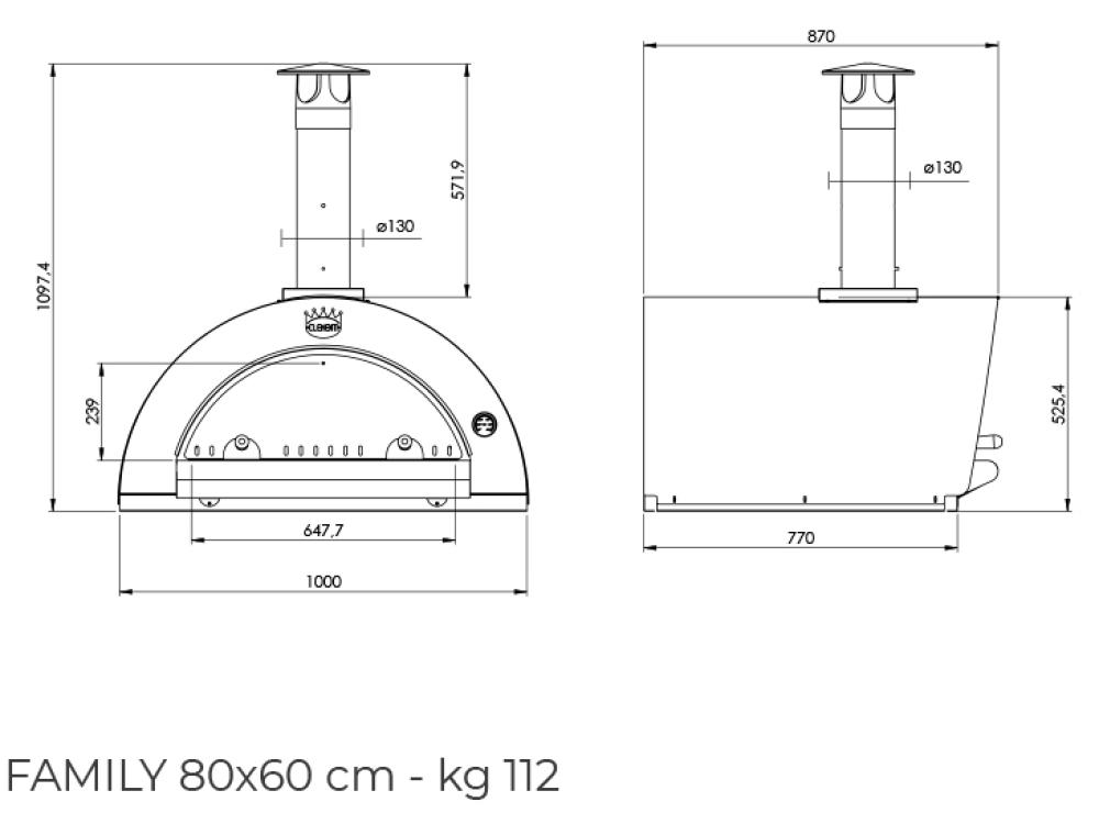 Dimensions disponibles de la chambre de cuisson : 60x60 (2 pizzas) 80x60 (4 pizzas) 100x80 (5 pizzas)