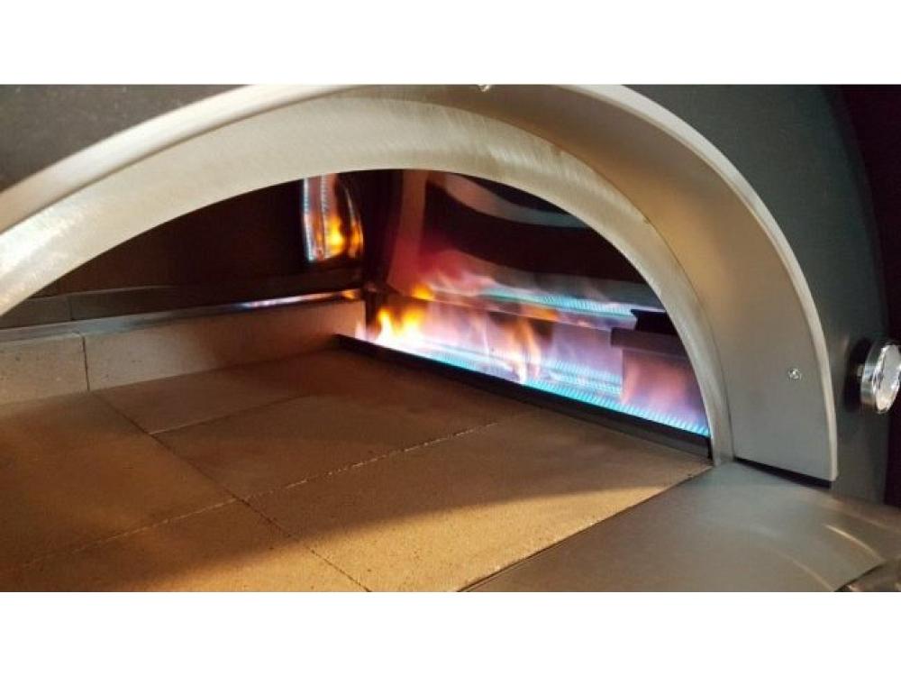 Cheminée en acier inoxydableThermomètreTablette frontale en acier inoxydablePorte de fermeture en acier inoxydableBase en réfractaire alimentaireBrûleur à gaz