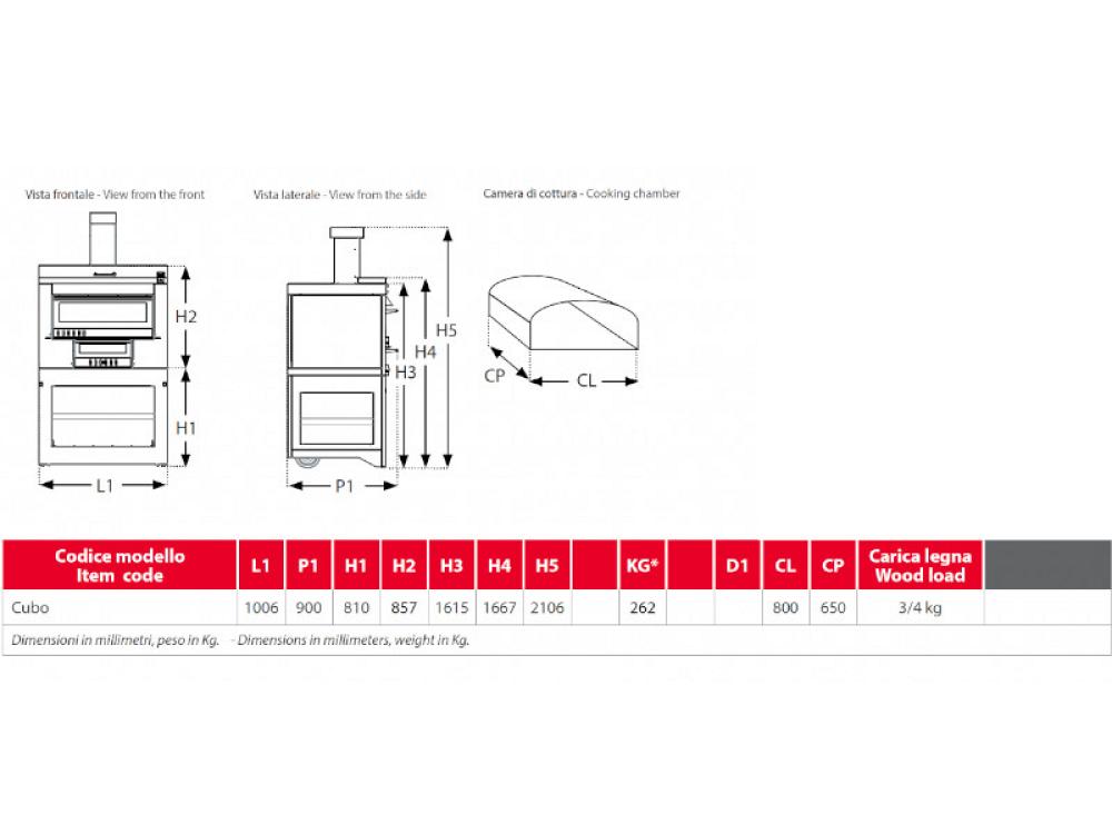 Caractéristiques techniques du four à bois d'extérieur Cubo