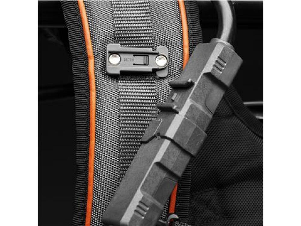 Une grande batterie au lithium-ion (Li-ion) fournit une puissance durable et des performances de haut niveau, tout en permettant un travail efficace avec moins d'interruptions pour le remplacement de la batterie. De larges bretelles rembourrées et une ceinture ventrale rendent l'ensemble confortable à porter, même pendant les longues périodes de travail. L'adaptateur de batterie permet de l'utiliser avec tous les produits portatifs Husqvarna alimentés par batterie. Équipé d'une grande capacité de portage grâce à l'ensemble de sangles réglables, il s'adapte parfaitement à toutes les tailles d'utilisateurs, réduisant ainsi le stress et la fatigue dus au port. Le point de fixation pivotant offre une grande mobilité et permet à l'utilisateur de se déplacer et de s'étirer de manière souple et confortable. Plusieurs points d'attache pour le câble d'alimentation sont également prévus sur la ceinture afin d'améliorer la position de port et la fiabilité du câble. Contrôle facile du niveau de charge de la batterie grâce aux LED d'indication et au pourcentage de charge indiqué sur l'adaptateur d'alimentation de l'équipement.