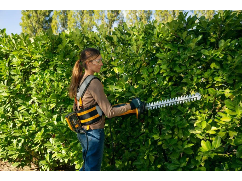 Cet accessoire est idéal pour de longues sessions de travail : en plus de supporter la batterie principale, il peut accueillir une batterie de rechange pour garantir une autonomie continue. Sa structure est robuste et légère, conçue pour offrir confort, durabilité et facilité d’utilisation, rendant l’entretien du jardin plus simple et efficace.